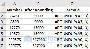 In same example, if we implement this formula we will get our numbers rounded to the nearest 1000.